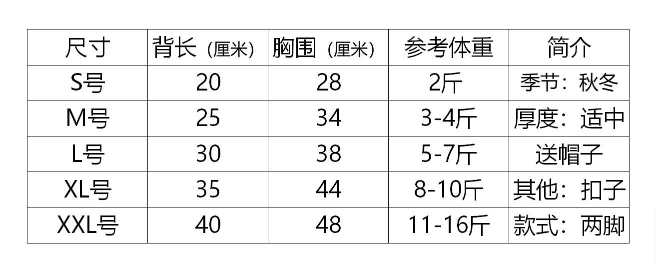 サイズ:Sバックレングス20(2kg推奨),M背丈25(3-4kg推奨),Lサイズバック丈30(5〜7kg推奨),XLバックの長さ35(推奨8-10kg),XXL背丈40推奨11-16kg