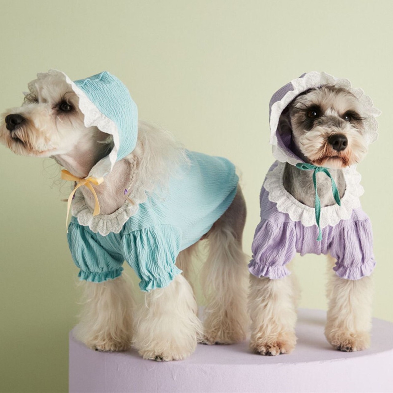 色:帽子付きブルーレーストップ,帽子付きパープルレーストップ